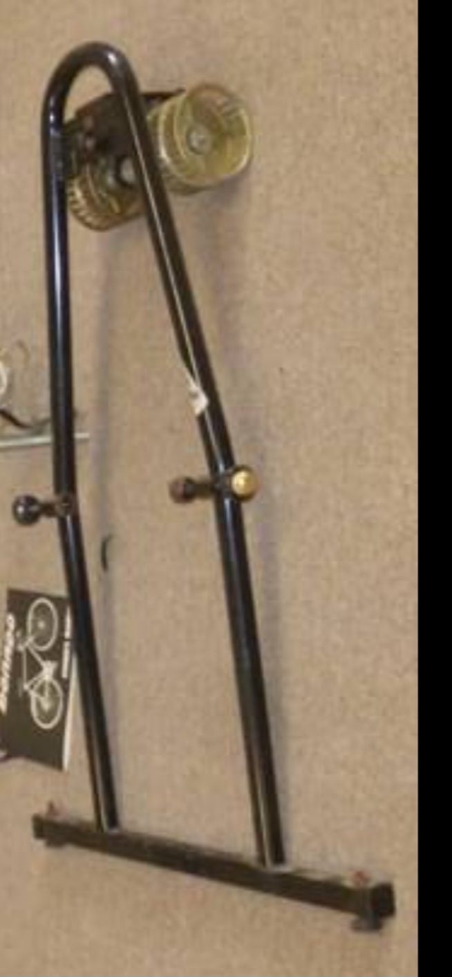 It attached to the skewer similarly to later stable wind trainers, but the fans were right behind the saddle once it was set, with a stop that rested against the center screw off the rear brake calipers and a resistance roller between the fans to touch the rear bike wheel. These were the days of gigantic phone books in our medium-sized city, so I used the yellow pages to bring the front wheel up to the right level. So dreadfully boring to ride this while watching various TV shows or sports events I had recorded via my VHS recorder. Probably contributed to me being a jogger/runner from the early 90s until about 2010. Much easier to go out for a run in bad weather than be motivated to ride indoor with these trainers!